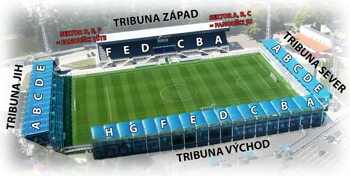 - SEKTORY D, E, F jsou vyhrazeny primárně pro fanoušky VŠTE